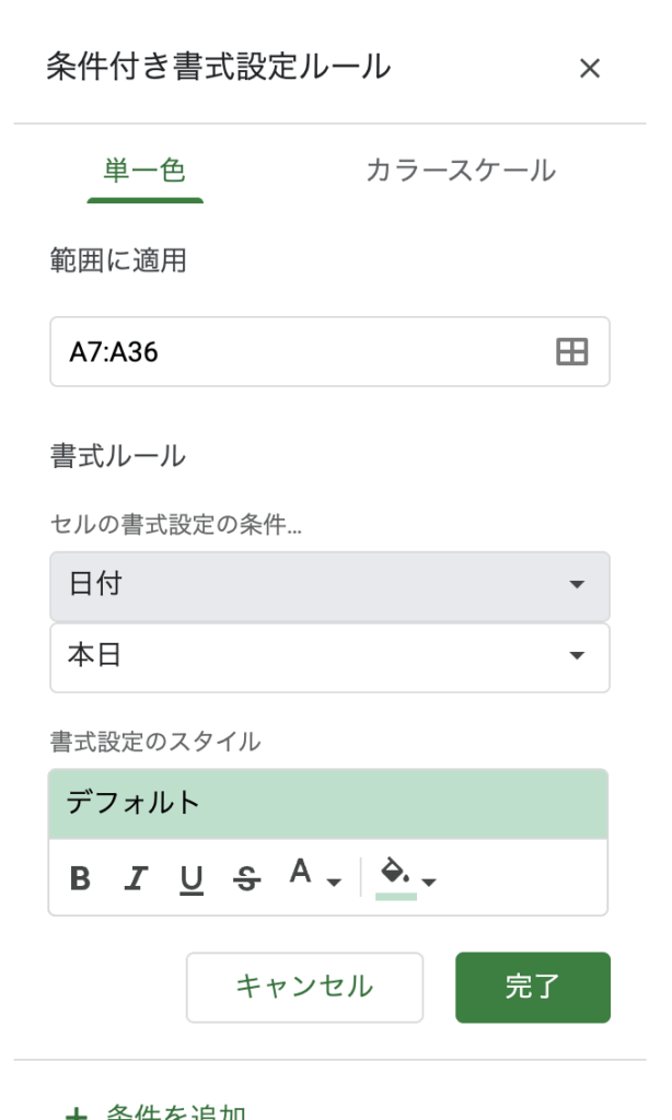 複数のルールを追加すれば、日付の範囲で色を変えることも可能です。